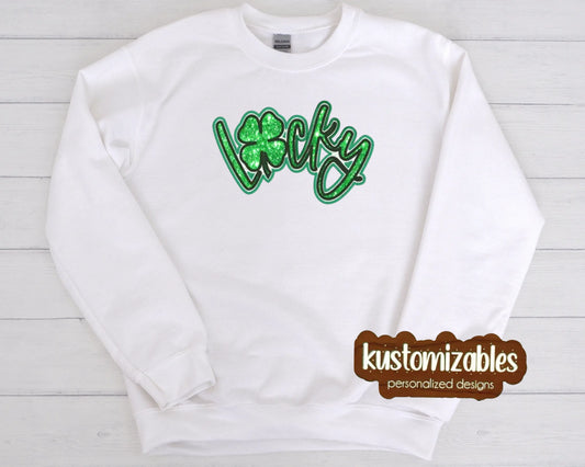 St Patricks LUCKY Double Glitter Applique